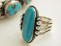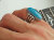 希少なタイロン・ターコイズをセットしたリング、しかも、珍しい日本人向けの小さめサイズです。このカボション(石)は、ヴィンテージ・ジュエリーからはずした物をリユースしているそうです。今となっては現地でもなかなか手に入らない、ロイヤルブルーに近い、非常に濃くて深みのあるターコイズブルーの色合いをお楽しみいただけます。