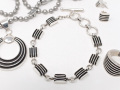 当店では、彼女が作り続けてきたラウンドシェイプ・リング、ブレスレット、イアリング、バックル、マネークリップに加え、独自にカスタム・オーダーした女性向けスモールサイズ・ブレスレット、リング、ペンダント、キーリング等も扱っております。同一のデザイン、作風で、色々なアイテムのマッチングを楽しんでいただくことも可能です。
