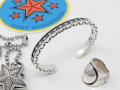 彼の作品の裏面には、トレードマークである『CAS』(Cody A. Sandersonのイニシャル)、出身である『NAVAJO(ナバホ)』、活動拠点である『SANTA FE』(サンタフェ)、素材を示す『.925』(スターリングシルバーの表示)の刻印があります。