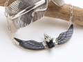 翼と胴体にはブラックジェット(木の化石の一種)、クチバシにはマザー・オブ・パール(真珠貝の内側)が使われています。