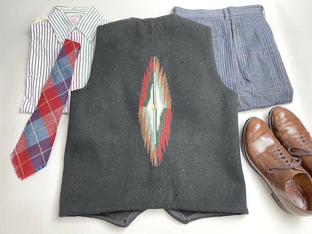 アメリカ合衆国の南西部を代表する伝統工芸品、手織りのウールブランケット、ベスト等で有名なニューメキシコ州チマヨ。その隣り村であるナンベ(Nambe)在住のガルシア夫妻による手織り、ハンドメイドのベストです。