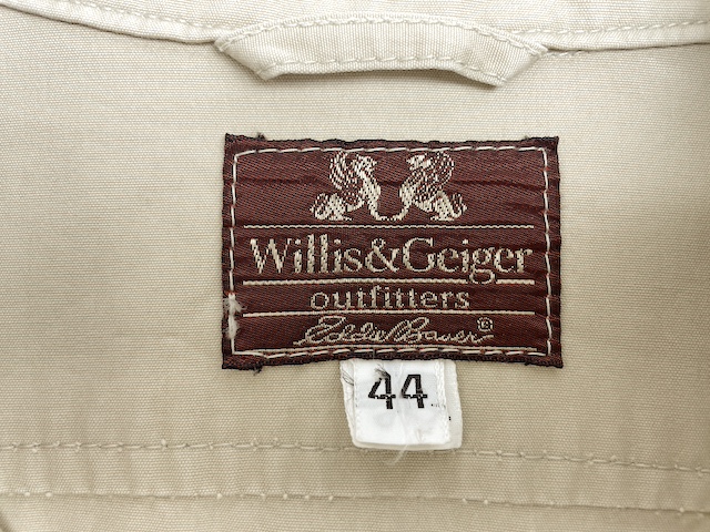 独特の気品と高品質を誇るサファリウェアやアウトドアウェアの雄 Willis & Geiger(ウィリス・アンド・ガイガー)、かつてのアメリカ製、340 Bush Poplin(ブッシュポプリン)素材のサファリジャケットです。