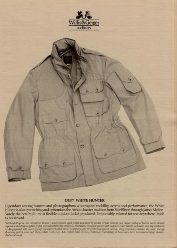 独特の気品と高品質を誇るサファリウェアやアウトドアウェアの雄 Willis & Geiger(ウィリス・アンド・ガイガー)、かつてのアメリカ製、340 Bush Poplin(ブッシュポプリン)素材のWHITE HUNTER(ホワイトハンター)です。