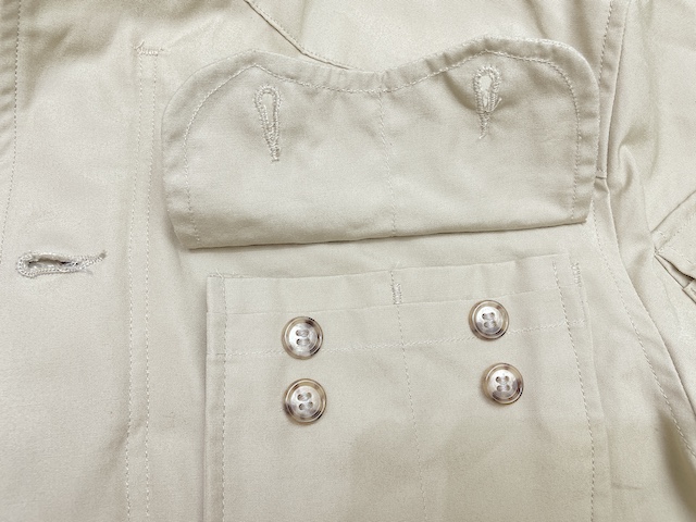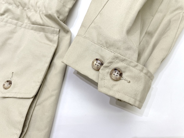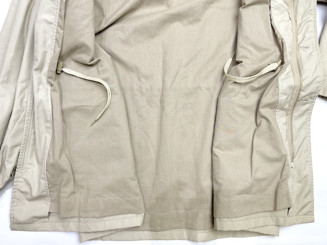 ウエストは、ヘミングウェイ・ブッシュジャケットのようなエラスティック方式ではなく、内側にストッパー付ドローストリングが通されています。