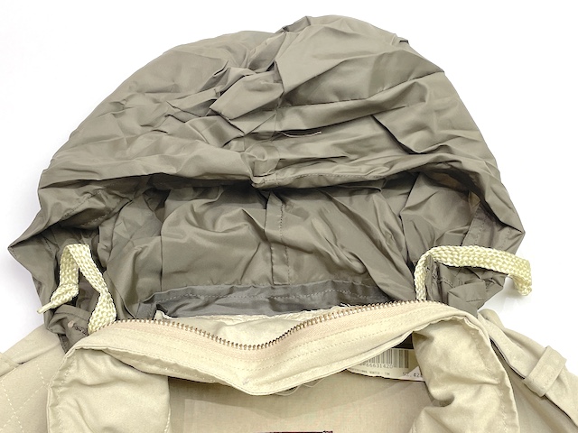 スタンドカラーの内側には、ナイロン製フードが内蔵されています。