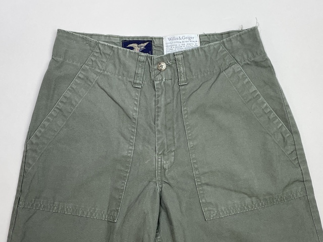 独特の気品と高品質を誇るサファリウェアやアウトドアウェアの雄 Willis & Geiger(ウィリス・アンド・ガイガー)、かつてのアメリカ製、340 Bush Poplin(ブッシュポプリン)素材のファティーグパンツ(ユーティリティーパンツ)です。