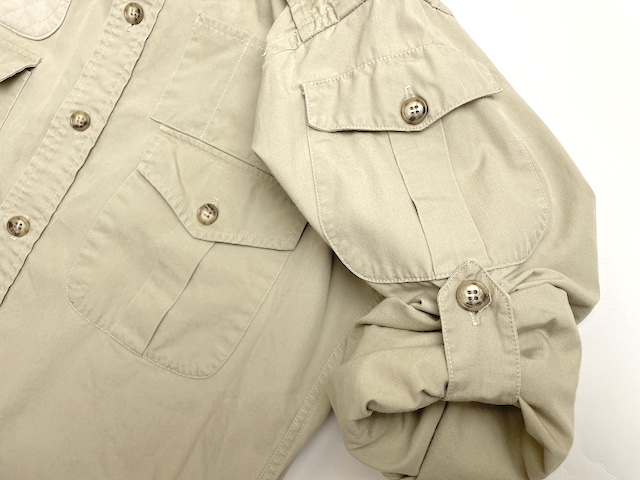 独特の気品と高品質を誇るサファリウェアやアウトドアウェアの雄 Willis & Geiger(ウィリス・アンド・ガイガー)、かつてのアメリカ製、340 Bush Poplin(ブッシュポプリン)素材のサファリシャツです。
