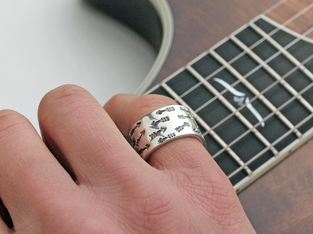 この作品の裏面には、トレードマークである『CAS』(Cody A. Sandersonのイニシャル)と、出身である『NAVAJO』(ナバホ)、素材を示す『STERLING』(スターリングシルバー)の刻印があります。