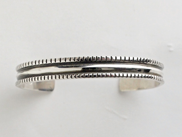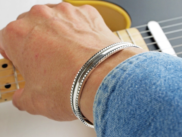 伝統的なナバホ製ブレスレットの雰囲気ですが、シャープでコンテンポラリーなイメージも持ち合わせています。シンプルでありながら、独特な存在感を持った逸品に仕上がっています。