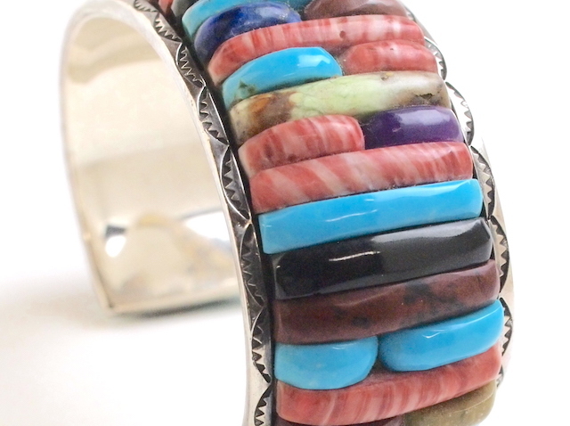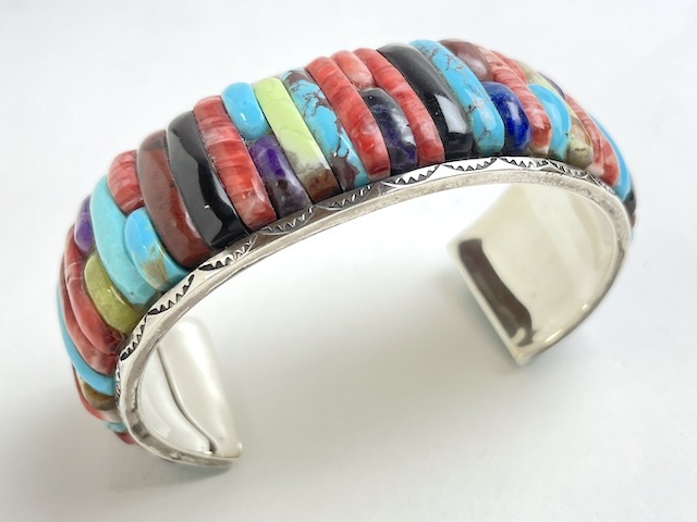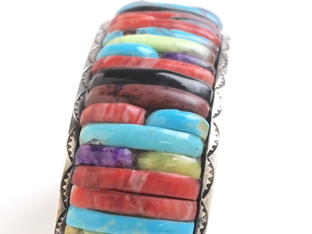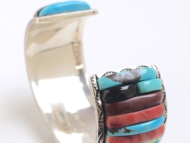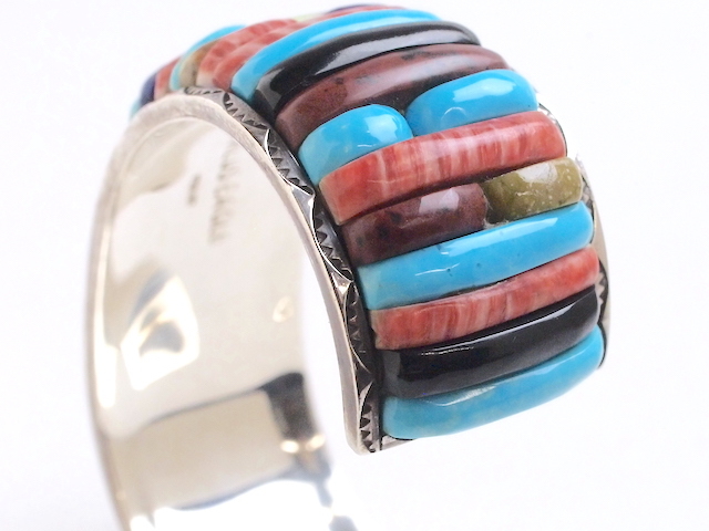 石や貝側などの素材の削り出しや研磨、シルバー加工、最終のバフ掛け他の全工程を、全て彼自身が一人で行なってきたそうです。