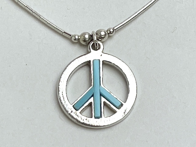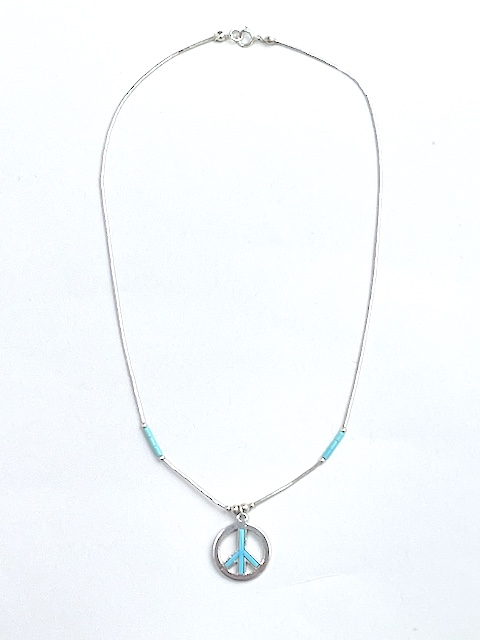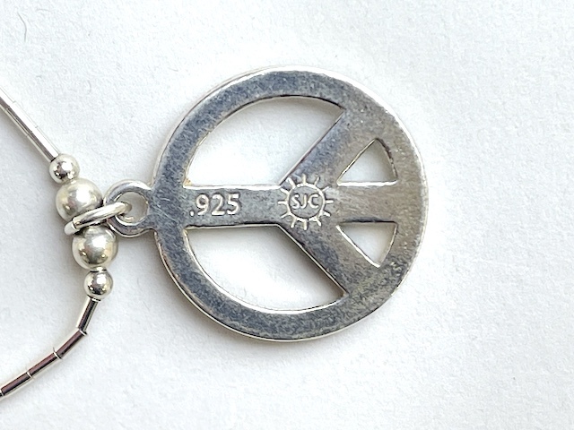 70's デッドストック 04-0192 ナバホ リキッドシルバー・チョーカー + ピースサイン・ペンダント 全長415mm