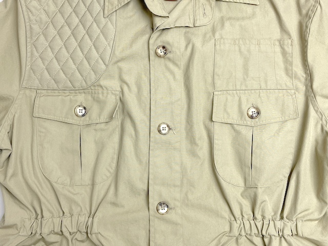 右肩から胸にかけてはRecoil Pad(リコイル・パッド = ライフルのストック(銃床)の反動を吸収するキルティングパッド)が、左胸にはOpen Cartridge Strip(オープン・カートリッジ・ストリップ = ライフルの薬莢入れ)が施された、本格的・実用的な作りです。