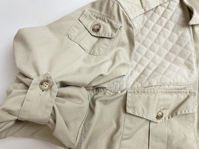 右肩にはRecoil Pad(リコイル・パッド = ライフルのストック(銃床)の反動を吸収するキルティングパッド)が、左胸にはOpen Cartridge Strip(オープン・カートリッジ・ストリップ = ライフルの薬莢入れ)が施された、本格的・実用的な作りです。
