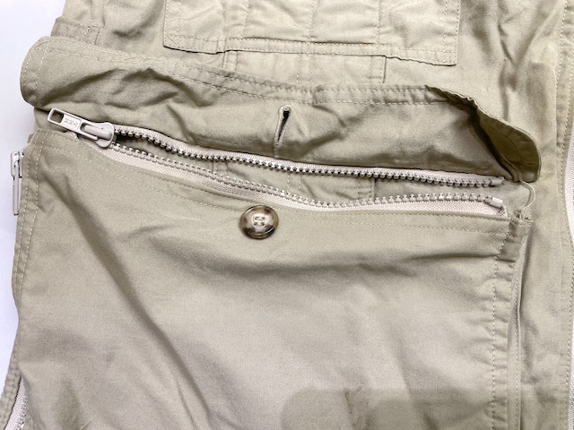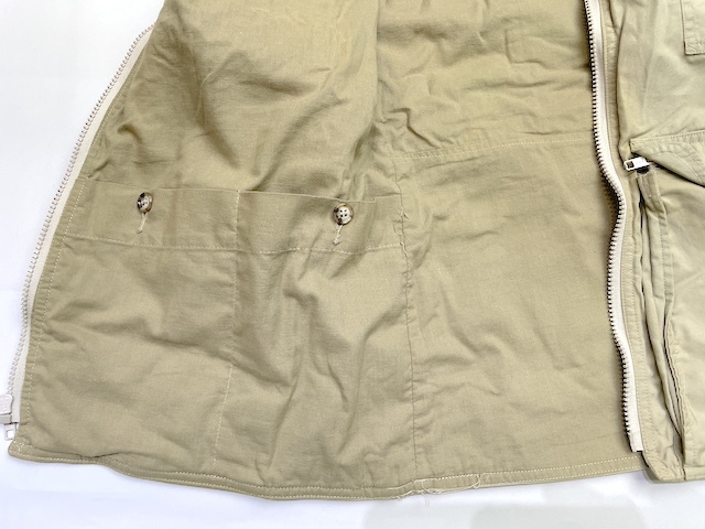 内側の左右腰部分にダブルボタン留めのインナーポケットが、また左胸の内側にはシングルボタン留めのミニポケットがあります。